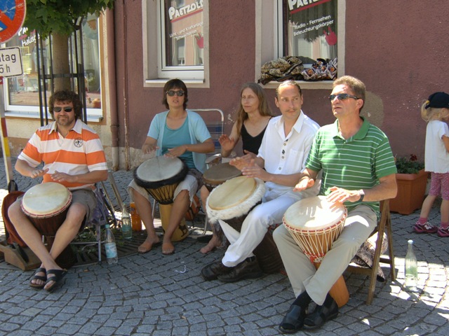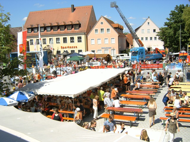 Volksfest in sommerlicher Hitze am Marktplatz |