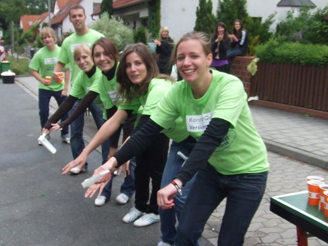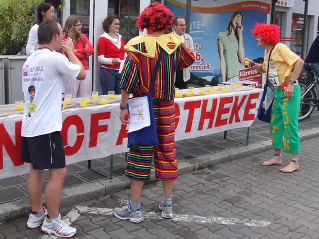 Auch hier wieder: genug zum Trinken und gut gelaunte Helferinnen |