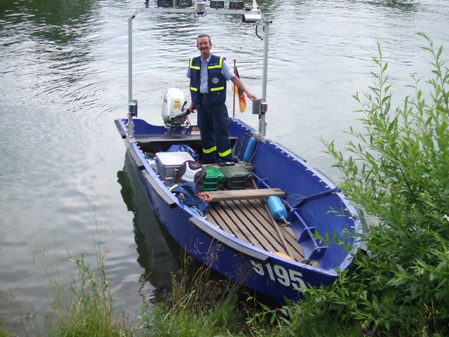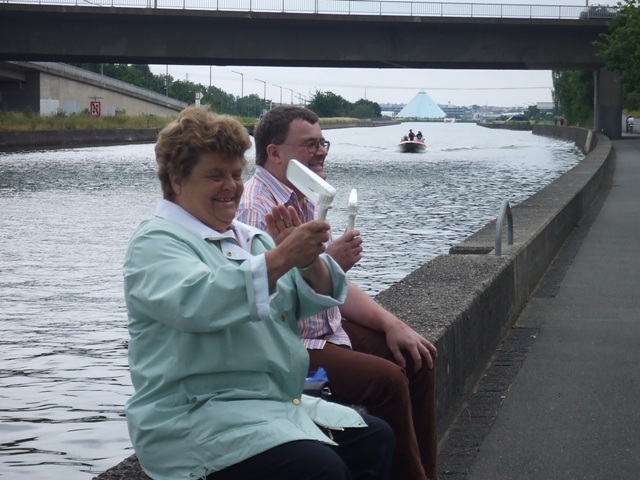 Als Letzte laufen wir jetzt direkt am Kanal, Begrüßung per Boot... |