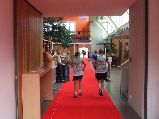 ...da passt es gut, dass wir durch die Halle laufen. Auf einem roten