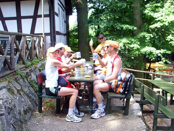Aaaah! - Unser 1. Biergarten nach etwa 1:30 Stunden: Leichtes