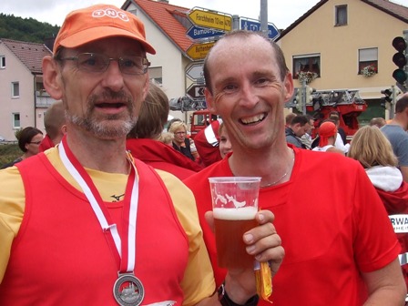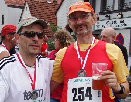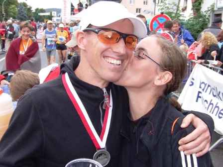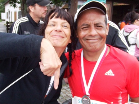 Anne (16km Siegerin W45) freut sich mit ihrem Lauftreff-Kollegen |