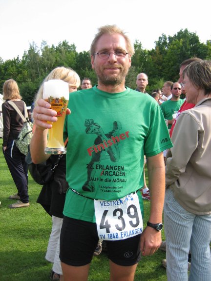 Glücklich im Ziel, mit einem Weizen. Das Bier hat so gut geschmeckt, ich
