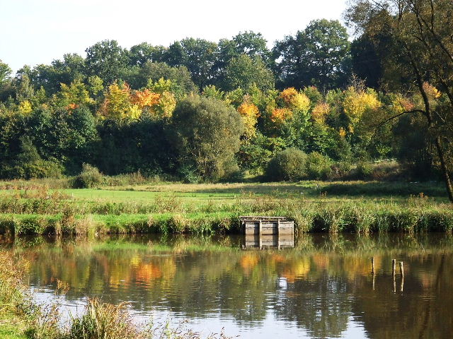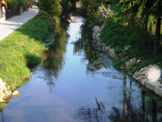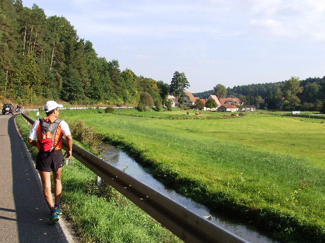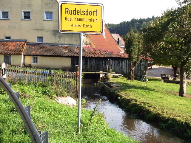 Immer dem Bächlein Aurach entlang: Wiesen-Grün und Himmels-Blau |