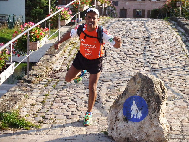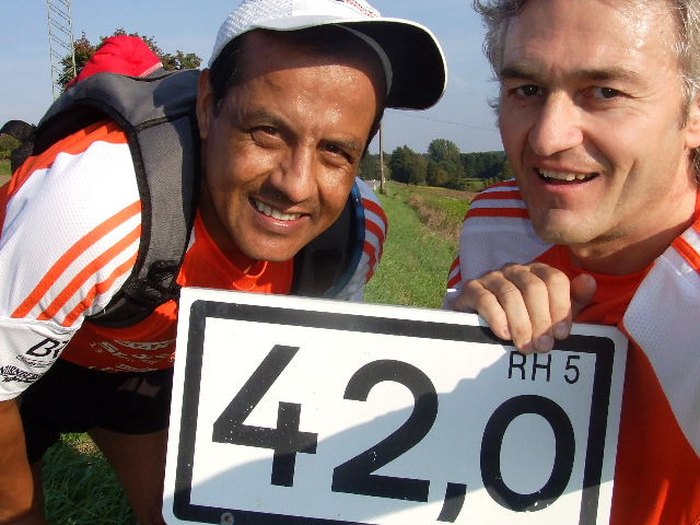 Wir Marathonläufer wollen nicht umdrehen bis wir das Schild km42