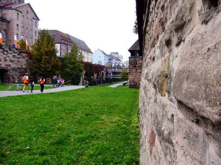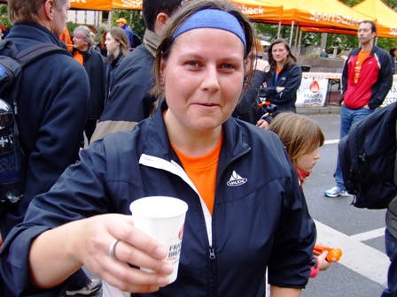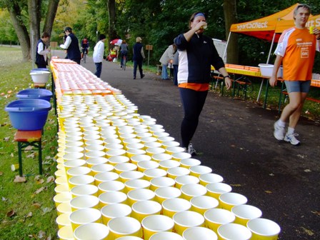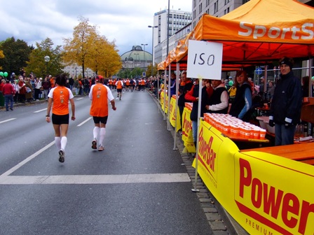 Auf der Wöhrder Wiese: Da vorne kommt die Getränkestelle km7. |