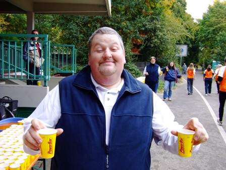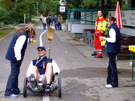 Besen-Jürgen (immer kommunikativ gut drauf) muss am Trink-Stopp
