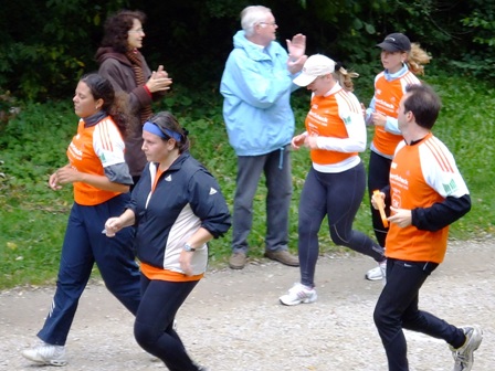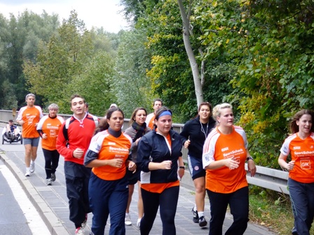 Aufwärmgymnastik und als Letzte in einer großen Gruppe langsam