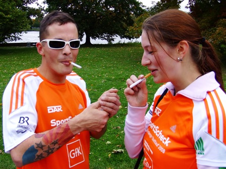 Was ist das??? Raucherpause während des Laufens? Gibt's doch nicht! |
