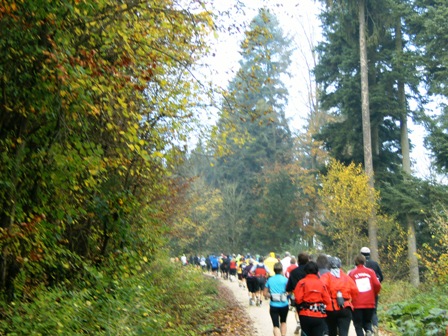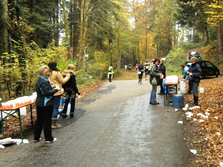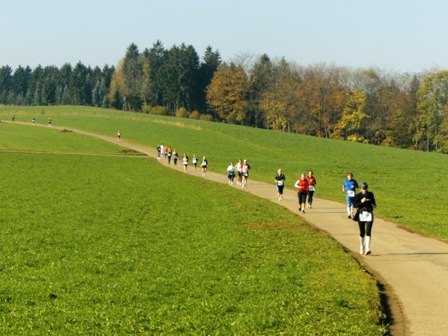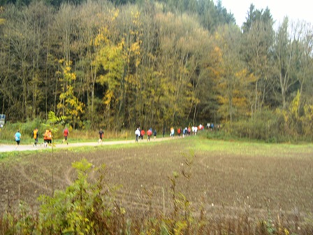 Nach km25 ist die Zahl der Läufer deutlich weniger geworden. Ich drehe