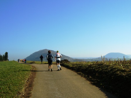Km11: Der erste Anstieg auf die Alb ist vorbei. Wir sehen die 3