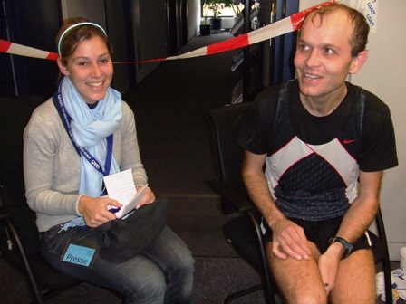 den Läufern bei allen un-möglichen Fragen, und nach dem Startschuss