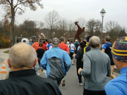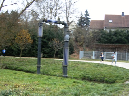 Los geht es auf dem Kunstweglauf: Erste Skulptur "Schütze" |