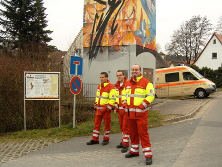 ...hier wieder die Johanniter-Helfer vor dem Kunstobjekt "Trafohaus: